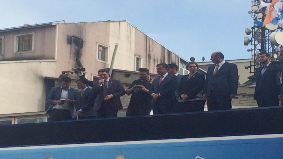 Akparti İl başkanlığı önünde toplanan kalabalığa sırasıyla İl Başkanı Sedat Özmen,Milletvekili adayları Erhan Tenekeci, Dilan Özmen Özgün,Abbas Aydın ve Ekrem Çelebi birer selamlama ve teşekkür konuşması yaptılar konuşmalar sık sık sloganlarla kesilen adaylar partililer ve vatandaşlar tarafından sevgiyle karşılandı.Konuşmaların ardından parti binasına geçildi.