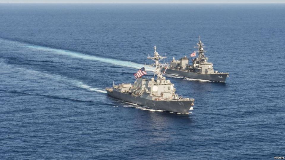Amerika savaş gemilerinin bölgede yer alan Tree, Lincoln, Triton ve Woody adaları yakınlarında manevralar gerçekleştirdiği kaydedildi.