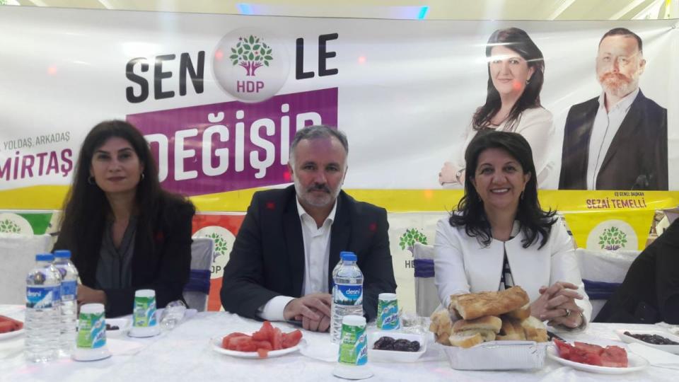 Bu ülkeyi artık yönetemiyorsunuz. Cesaretleri olmadığı için Selahattin Demirtaşı’ı, milletvekillerimizi, belediye başkanlarımızı, bu ilin belediye başkanını, yüzlerce partilimiz cezaevine tıktılar. Ülkeyi yarı açık cezaevine çevirdiler. Kimsenin yaşam güvencesi yok. İşçiyi, kadını, genci perişan eden anlayışla bu ülkeyi artık yönetemiyorsunuz. Halkımız kararını vermiş, AKP’yi gönderecek. Bizler 24 Haziran’a kadar bedeli ne olursa olsun çalışacağız. Ama halkımız bizden daha kararlı, halkımız kararını vermiş, AKP’yi gönderecek. 24 Haziran başka bir tarih olacak. Buna herkes inanmalı. AKP’liler HDP’yi baraj altında bırakmak için her gün bir oyun oynuyor. Buna devam edecekler. Biz buna izin vermeyeceğiz. Oylarımıza sahip çıkacağız, barajı aşacağız. Bu ülkenin yönetimine talip bir parti olarak 24 Haziran sonrası bu ülkeyi Selahattin Demirtaş’ın Cumhurbaşkanı olduğu bir ülke yapacağız. Bizler varız, sizler varsınız bu ülkeyi hep birlikte yöneteceğiz