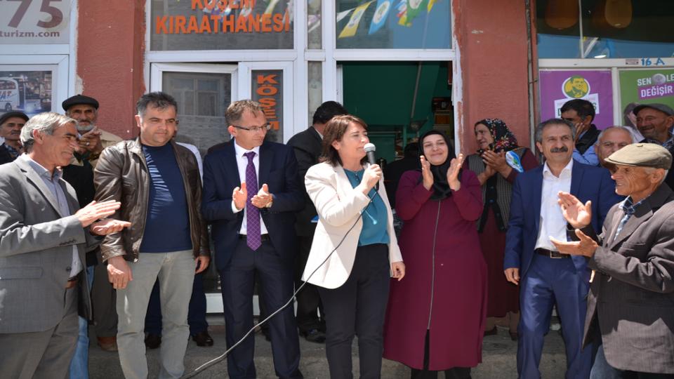 “Yaklaşık 30 yıllık bir aradan sonra memleketim olan Ardahan’a ilk defa geliyorum ve burada olmaktan dolayı çok mutluyum. Çünkü biz Halkların Demokratik Partisi olarak Ardahan’da da çok güçlü bir partiyiz. Hedeflerimizin burada da çok iyi anlaşıldığını görüyorum. Çok büyük sevgiyle karşılandığımızı da görüyorum. Biz halkların umuduyuz birlikte yaşamın umuduyuz. Burası tamda HDP’nin öngördüğü gibi bir havaya sahip, halklar bahçesi çoğulcu bir yapı var. Burada ki yok edilmiş bazı şeylerde var, yani bu yapı burada yok edilmeye tek tipleşmeye çalışılmış bugüne kadar fakat buna rağmen farklı halklar kültürler burada var olabilmişler. Birlikte yaşamışlar biz daha iyi bir yaşamı birlikte kurabiliriz. Halkların Demokratik Partisi güneşli güzel günlerin işaretini veriyor. Tüm yurttaşlarımıza tüm hemşerilerimize Halkların Demokratik Partisine destek olmaya ve oylarını HDP’ye vermeye çağırıyorum” şeklinde konuştu.