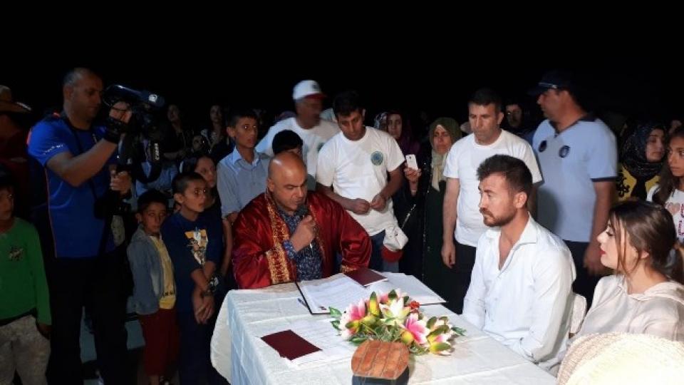 Renkli görüntülerin sahne olduğu nikah törenine festivale gelenler de yoğun ilgi gösterirken, nikahın yapıldığı mağara yerin 1500 metre altında olduğu öğrenildi.