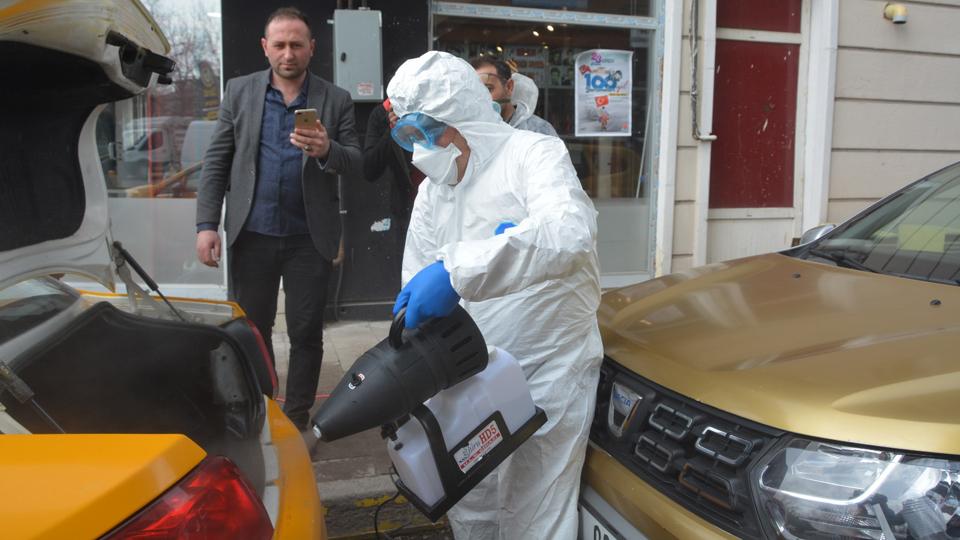 Çin’de ortaya çıkan ve kısa sürede tüm dünyayı saran corona virüs salgınına karşı özel kıyafetli ekipler, belediye hizmet binası, taksi, minibüs ve şehirler arsı otobüsler başta olmak üzere toplumun yoğunluklu bulunduğu alanlarda dezenfekte çalışmaları devam ediyor.