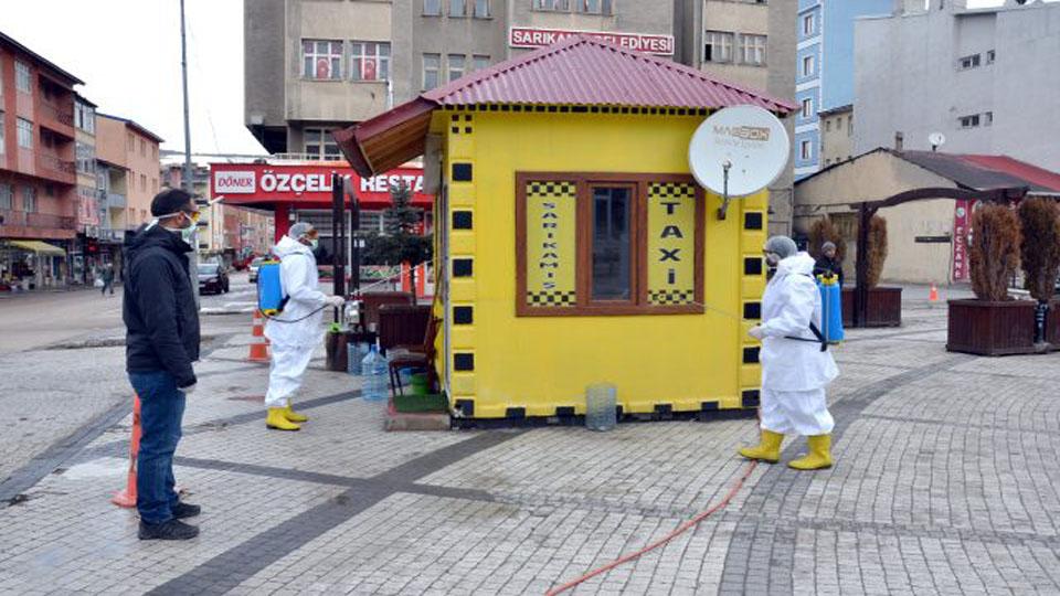 Kars’ın Sarıkamış ilçesinde koronavirüs tedbirleri kapsamında başlatılan dezenfekte çalışmaları devam ediyor.