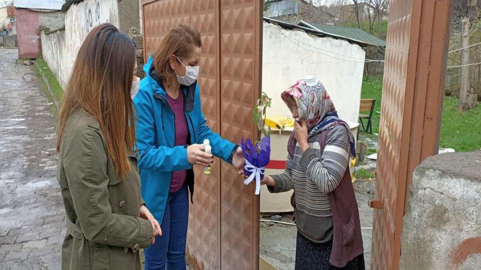Mahallelerdeki evlerin kapısını çalan Eş Başkan Şevin Alaca ve Başkan Yardımcısı Muazzez Çağrıtekinci, Kars Belediyesi Kadın ve Aile Müdürlüğü çalışanları da eşlik etti. Başkanlar ve beraberindekiler, kentteki farklı mahalleri gezerek evlerin kapısını çalıp, kadınlara anneler gününe özel hazırlanmış çiçek, kolonya ve dezenfektan solüsyonu hediye etti.