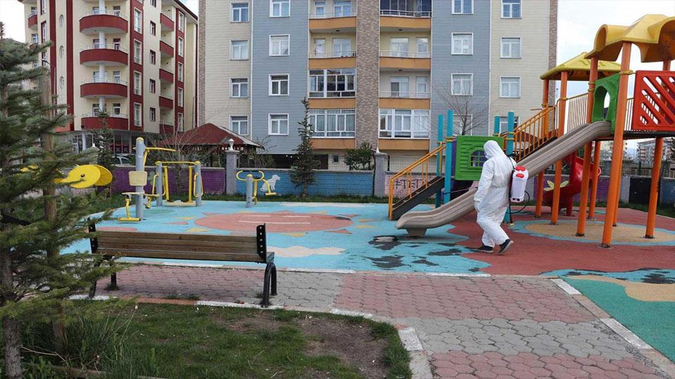 Ağrı’da çocuk parkları belediye ekiplerince dezenfekte edildi.