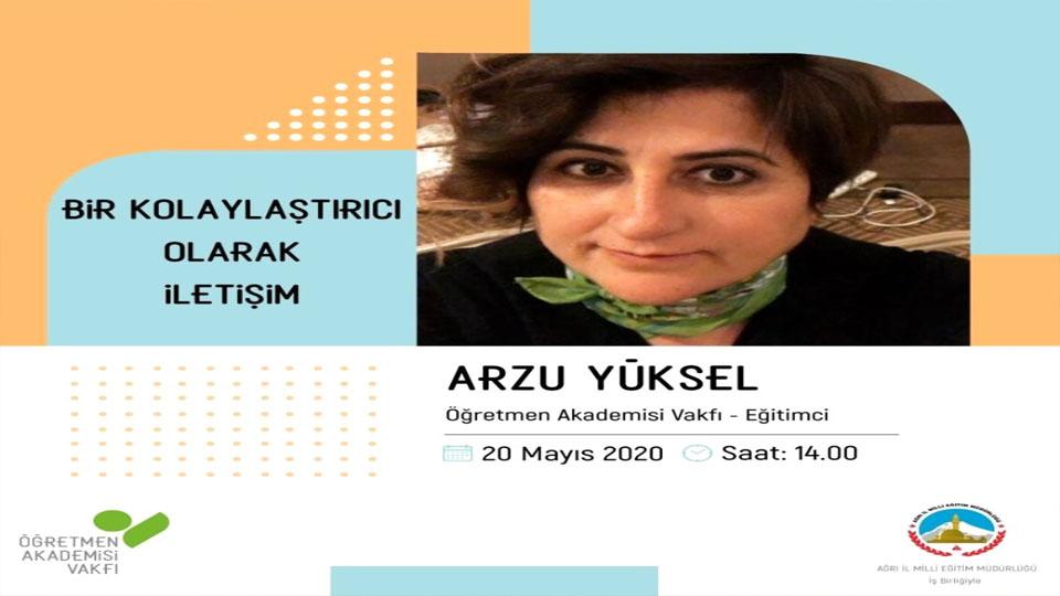 Ağrı İl Milli Eğitim Müdürlüğü ve Öğretmen Akademisi Vakfı ile birlikte öğretmenlere yönelik e-konferans yoluyla “Bir Kolaylaştırıcı Olarak İletişim” 20 Mayıs’ta konferans yapılacak.