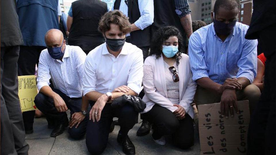 Kanada Başbakanı Justin Trudeau, başkent Ottawa’daki “Siyah Canlar Kıymetlidir” protestolarına katıldı. ABD’de sembol haline gelen tek dizinin üzerine çökerek protesto etti.