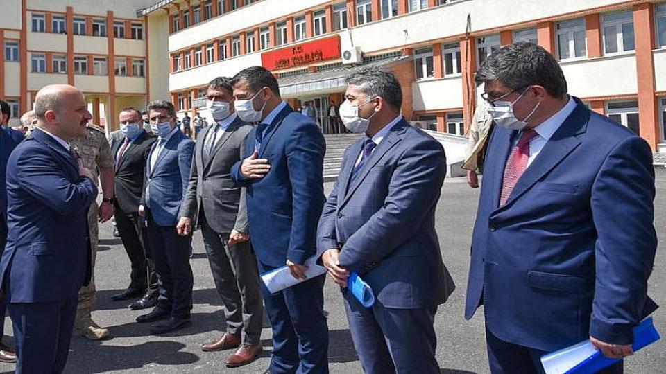 Ağrı Valiliği önünde düzenlenen karşılama töreninde, sosyal mesafeye dikkat edildi.