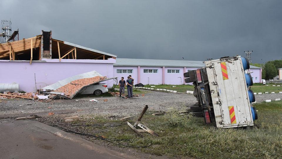Kars’ta öğle saatlerinde oluşan hortumhayatı olumsuz etkiledi. Hortumun nedeniyle bazı binaların çatıları uçtu.