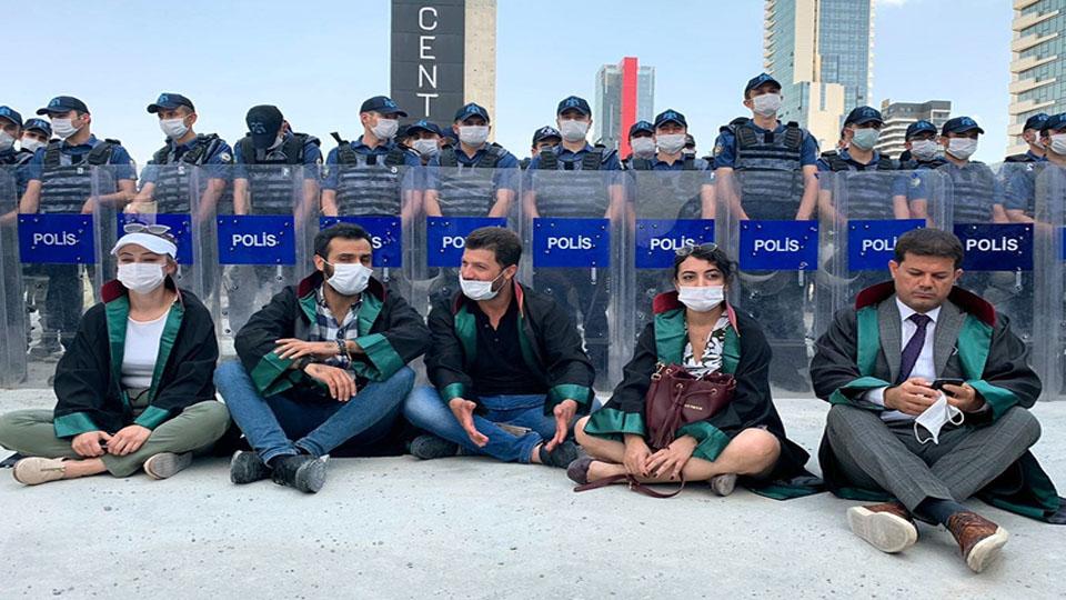 Avukatların yol açılana kadar bekleyeceklerini belirtmesinin ardından, hukukçular polis tarafından çembere alındı.