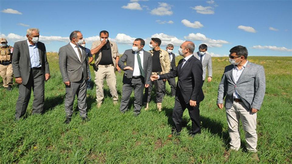 Kavılca Buğdayı tarlasındaki incelemelerinin ardından Bulanık Köyü’ne geçen Vali Öksüz, köydeki su deposu ve portatif ağılı inceleyerek yetkililerden bilgi aldı.