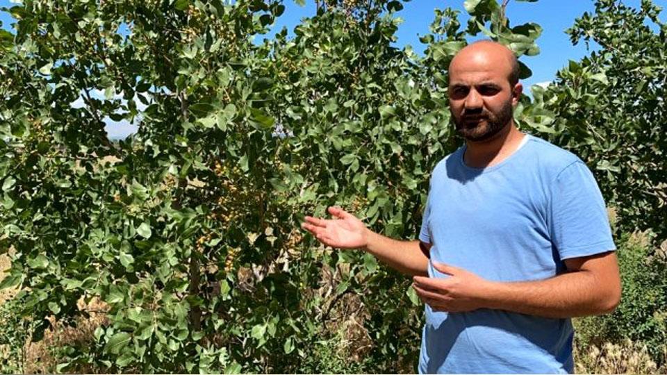 Genç öğretmen Nihat Alçan, Iğdır’ın verimli olmayab bölgesi Aralık ilçesinde Antep fıstığı yetiştirdi.
