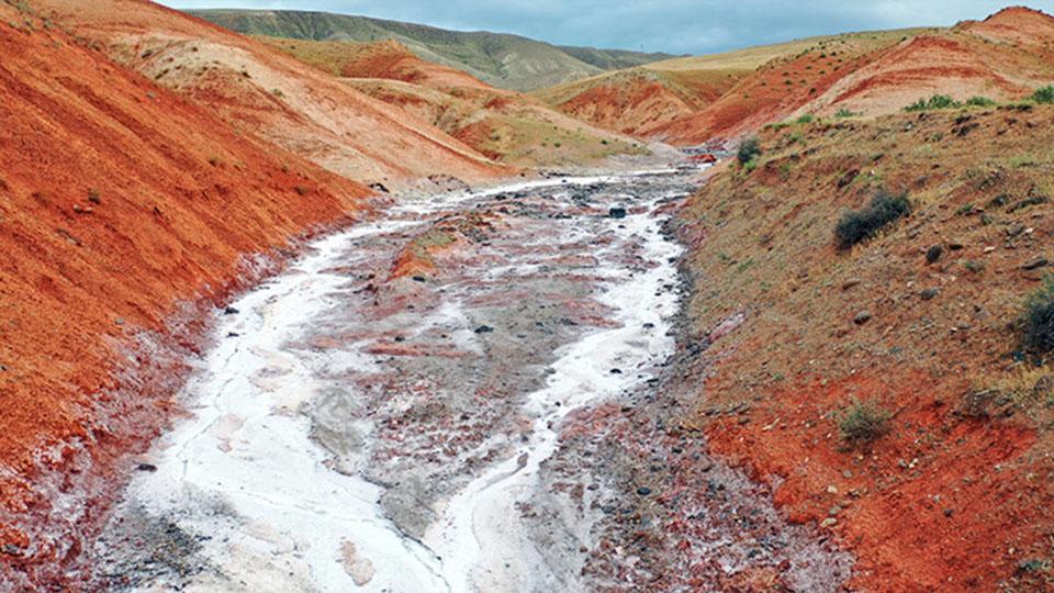 Bölgedeki tuz rezervi nedeniyle hiçbir bitkinin yetişmediği kırmızı toprakların arasından geçen tuz deresi, görenleri kendine hayran bıraktırıyor.