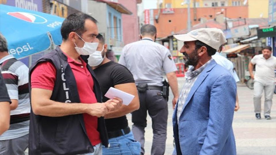 Kentin en yoğun caddesi olan Cumhuriyet Caddesinde denetimlerini sürdüren polis ekipleri, maskesiz olarak gördükleri vatandaşları uyardı, uyarıları dikkate almayan vatandaşlara para cezası yazdı.