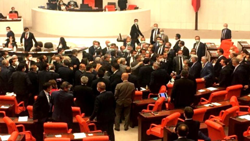 Tartışmaya Barış Atay’ın da dahil olmasıyla AK Parti vekilleri “Bağırma lan!” ifadelerini kullandı. Bu sırada itişmeler yaşandı.