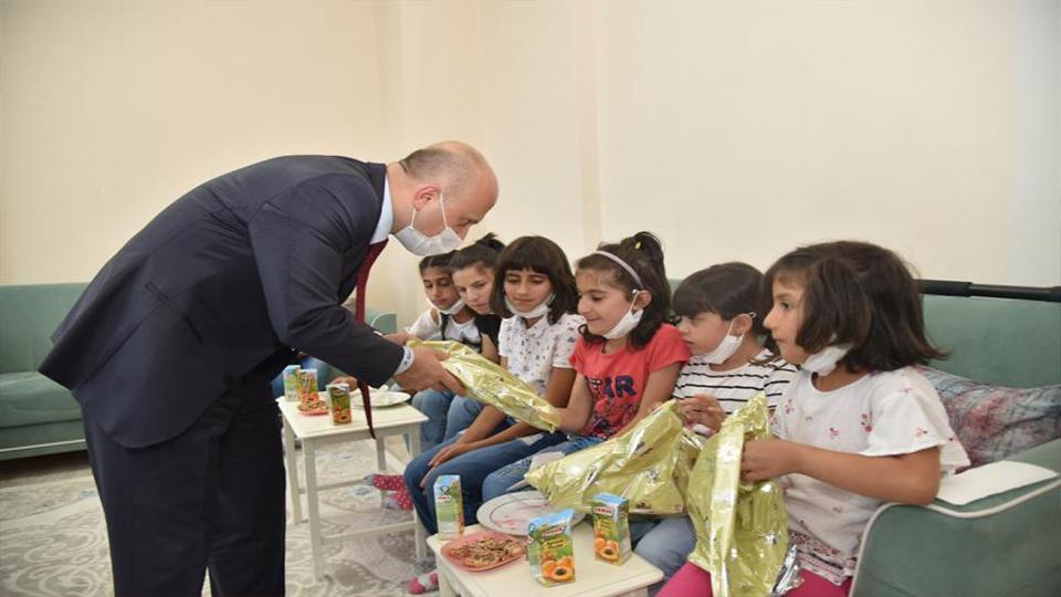 Çocuklarla tek tek sohbet eden Vali Varol, kendilerine hediyeler verdi.