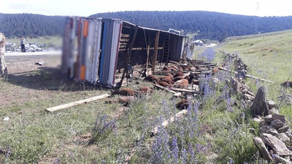 Kurbanlık hayvan taşıyan tır, Sarıkamış’ta kaza yaptı. 32 küçükbaş hayvanın telef olduğu kazada sürücü ve beraberindeki iki kişi yaralandı.