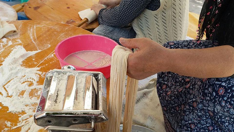 Kent merkezinde bir araya gelen kadınlar, kestikleri erişteleri ipe sererek kurutuyor. Kesilen ve tellere asılan erişteler renkli görüntülere sahne oldu. Sabahın erken saatlerinde başlayan erişte kesimi akşam saatlerine kadar devam ediyor. Asılan erişteler daha sonra fırında kavrulduktan sonra kutulara konulup, kış için saklanıyor.