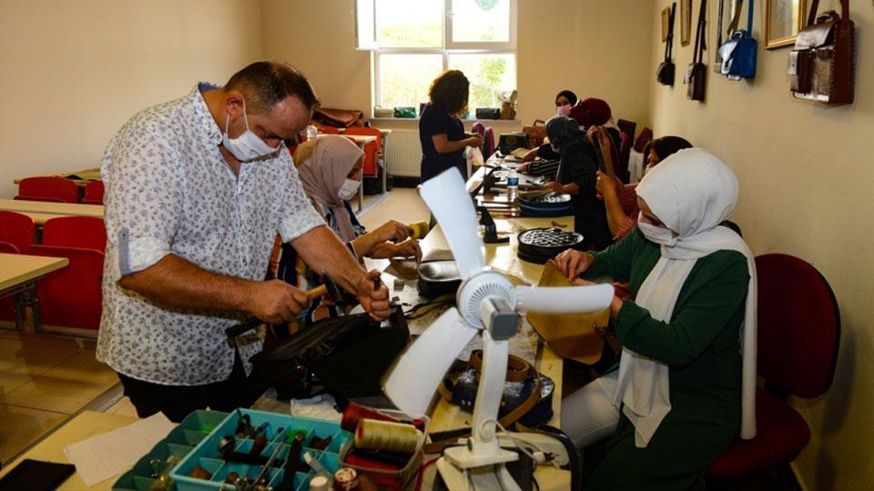 Deriden aksesuar ve ev eşyası üretmenin yanında İŞKUR’dan aldıkları maaşla da aile ekonomilerine katkıda bulunan 15 kadın kursiyer, gelecekte geçim kaynaklarını oluşturacak deri işleme sanatının inceliklerini öğreniyor. Uzman öğreticiler eşliğinde çalışmalarını sürdüren yöre kadınlarından bazıları atölye açarak üretime başlamayı, bazıları ise yüksekokula kayıt yaptırarak bu alanda kariyer yapmayı planlıyor.