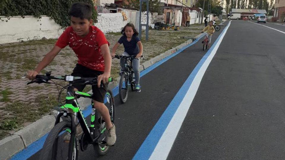 Kars Belediyesi, sokak aralarında ve işlek caddelerde güvenli olmayan şekilde bisiklet süren çocukların derdine çare olmak için, şerit çizgileriyle bisiklet yolu yaptı.