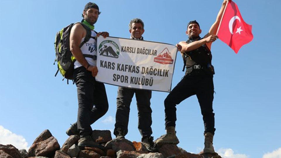 Kars Kafkas Dağcılık Kulübü kurucuları Alpay Korkmaz, Ahmet Öztürk ve Tacettin Durmuş Serhat Bölgesinde yer alan 2 bin 500 metreden yüksek dağlara tırmanıyor.