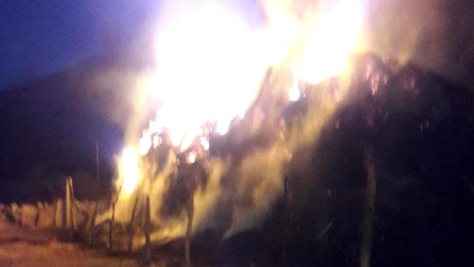 Ağrı’nın Taşlıçay ilçesinde çıkan yangında 50 ton ot ve bir ton saman küle döndü.