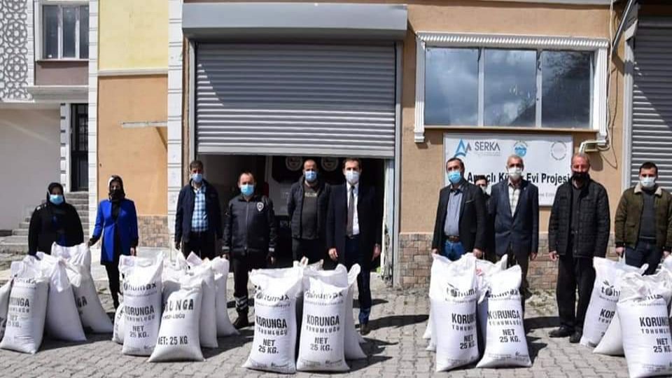Tarımsal işletmelerin verimliliğini arttırma projesi kapsamında çiftçilere korunga tohumu dağıtıldı.