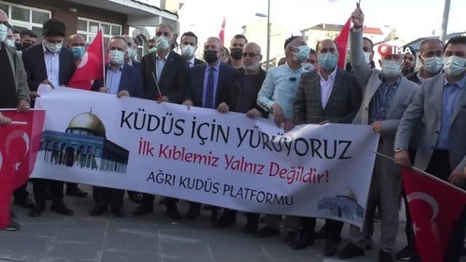 Ağrı Kudüs Platformuna üye STK'lar, siyasi parti teşkilatları ve yüzlerce vatandaş, İsrail'in Filistinlilere yönelik saldırılarını protesto etmek için Meydan Camisi önünde bir araya geldi. Kudüs Platformu adına basın açıklasını okuyan Turgut Özmüş, Mescid-i Aksa'nın Müslümanların ilk kıblesi ve tüm insanlığın ortak değeri olduğunu söyleyerek, "1917 yılından beri aşama aşama Filistin topraklarını işgal eden İsrail, buradaki işgali planlı bir şekilde sürdürdüğü gibi her fırsatta Filistinli kardeşlerimize ve kutsalımız Mescid-i Aksa'ya saldırmaktadır. İsrail'in insanlığın ortak değerlerine, temel insan haklarına, uluslararası hukuka ve insana dair her türlü değere aykırı bu eylemleri derhal durdurulmalıdır. Bugün bunu sağlamak tüm insanlık için bir görev dir. Ülkeler bu konudaki tavrını net olarak ortaya koymalı, toplumlar ise geniş insanlık ailesi adına konuşmalıdır. Bir asırdır devam eden bu işgale eğer bugün dur denilmezse yarın çok geç olacaktır.
