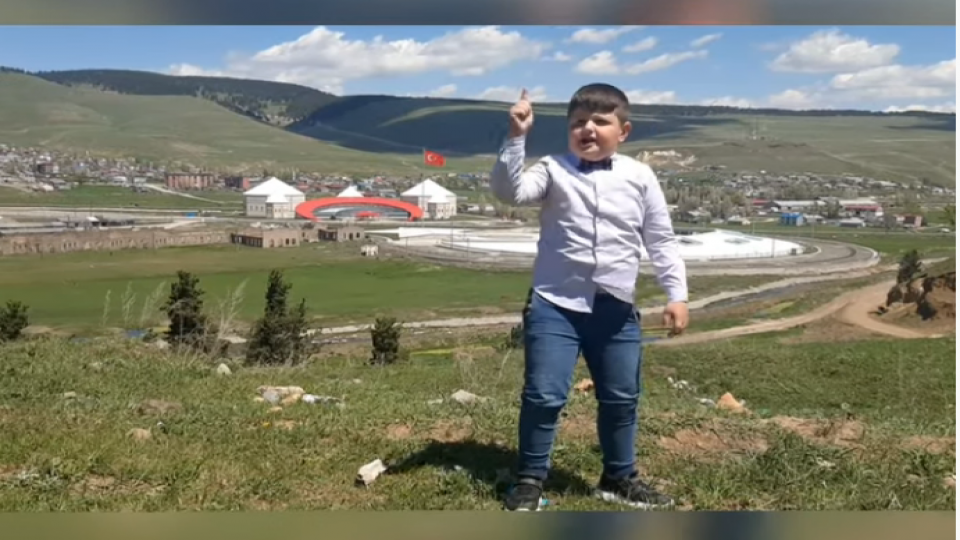 Sarıkamış Kaymakamlığı Yazı İşleri Müdürü Mustafa Doğanay'ın torunu Mustafa Yiğit Erenuluğ şiirini Cennet Memleketim başlığı ile seslendirdi.