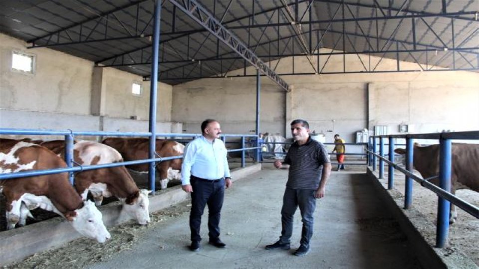Iğdır Merkeze bağlı Özdemir Köyünde Hayvan yetiştiriciliği ve süt üretimi yapan Ahmet Güneş'in çiftliği, Iğdır İl Tarım ve Orman Müdürü Özkan Yolcu tarafından ziyaret edilerek, işletme hakkında bilgi alınarak incelendi.