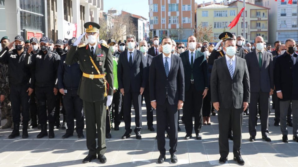 Saygı duruşu ve İstiklal Marşı okundu. Hükümet Konağı önünde düzenlenen çelenk koyma törenine Vali/Belediye Başkan Vekili Türker Öksüz, Tugay Komutanı Tuğgeneral Hakan Tunç, Başsavcı Soner Aygün, Rektör Yardımcısı Prof. Dr. İsmail Çakmak, İl Emniyet Müdürü Yavuz Sağdıç, Jandarma Komutanı Albay Hıdır Ayçiçek, kurum ve daire amirleri katıldı.