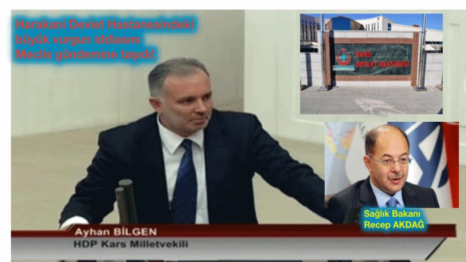 HDP Kars Milletvekili Ayhan BİLGEN Sağlık Bakanı Recep AKDAĞ 'a Kars Harakani Devlet Hastanesi ile ilgili vahim iddiaları sordu! Serhatın Sesi olarak içerden aldığımız bilgiye göre Sayın BİLGEN önümüzdeki günlerde sağlık hizmetleriyle ilgili daha da çarpıcı iddiları gündeme taşımaya devam edecek.