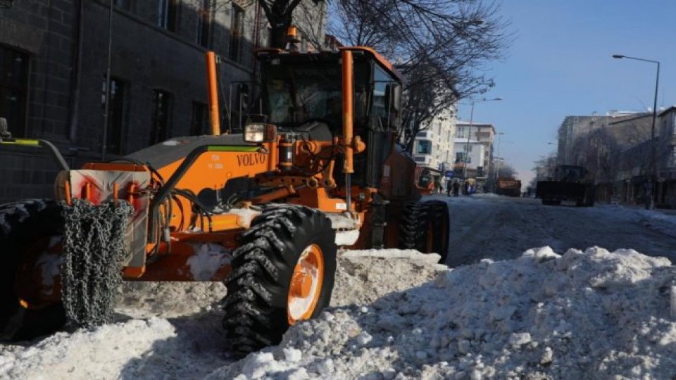Kars Belediyesi koordinesinde karla mücadele çalışmaları 1 greyder, 4 kamyon, 1 yükleyici kepçe, 1 loder, 1 bobcat iş makinası ile devam ediyor.