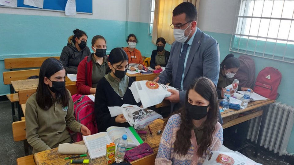 2021-2022 Eğitim Öğretim Yılı 2. Döneminde 65.UDH Bakanı, Kars Milletvekili Ahmet Arslan’ın hediye olarak gönderdiği 8’nci sınıf yardımcı kitaplarını AK Parti Kars İl Başkanı Adem Çalkın ve yönetimi, merkez ve köy okullarındaki öğrencilere teslim etti.