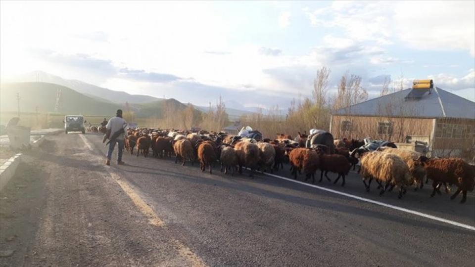 Ağrı merkezden Ceylanlı mevkisine gitmek üzere ilçeden geçirilen 500 koyundan oluşan sürü, ilçe yolunda trafiği bir süre aksattı.