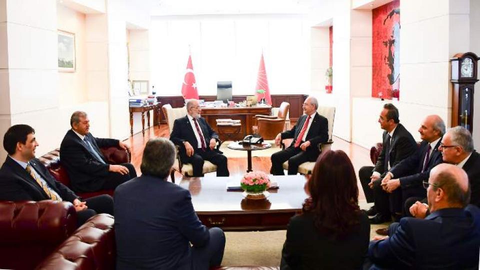 ANKARA – CHP Genel Başkanı Kemal Kılıçdaroğlu ile Saadet Partisi Genel Başkanı Temel Karamollaoğlu, ittifak ve cumhurbaşkanlığı adaylığıyla ilgili görüş alışverişinde bulunmak üzere biraraya geldi. CHP Genel Merkezi’ndeki görüşme saat 10.00’da başladı.