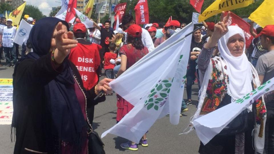 1 Mayıs, Diyarbakır'da İstasyon Meydanı'nda kutlanıyor. HDP Eşbaşkanı Sezai Temelli'nin da katıldığı kutlamalarda konuşan DİSK bölge temsilcisi Gürbüz, "Bize dayatılan bu vahşi sermaye düzenine karşı işimizi, ekmeğimizi, doğamızı, ormanımızı, mahallemizi ve tarlamızı savunuyoruz. Hukuksuz antidemokratik uygulamalara karşı cevabımızı en güçlü şekilde 24 Haziran'da vereceğiz" dedi.