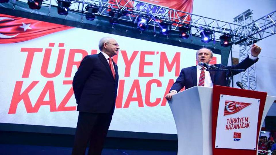 CHP, 24 Haziran seçimlerindeki Muharrem İnce’nin adaylığını Ankara Ahmet Taner Kışlalı Spor Salonu’nda düzenlediği törenle açıkladı. Törende İnce’den önce kürsüye çıkan Kılıçdaroğlu hükümetin darbe girişimini fırsata çevirdiğini ve buna karşı çıkan bir tek partinin CHP olduğunu söyledi.