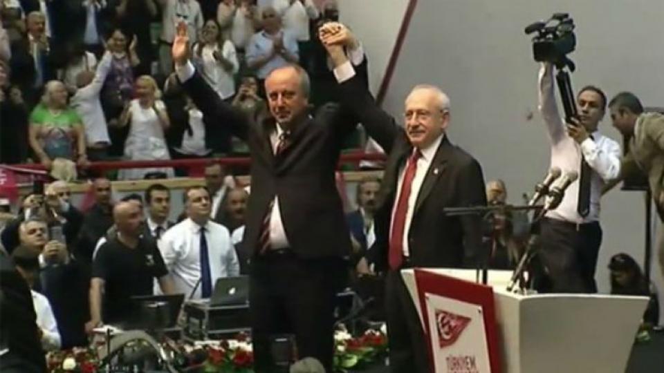 İnce, bu ifadelerinin ardından tarafsızlığının göstergesi olarak CHP rozetini çıkardı. Kılıçdaroğlu da İnce’ye Türk bayrağı rozeti taktı.