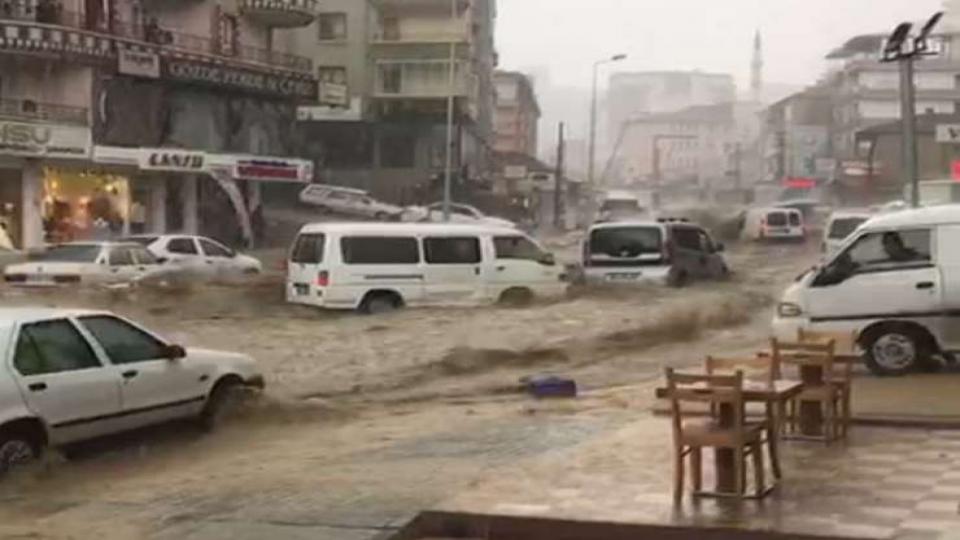 Sel nedeniyle altı kişinin yaralandığı belirtilirken, sular otomobilleri sürükledi. Bir kişi de yine sel nedeniyle sürüklendi.