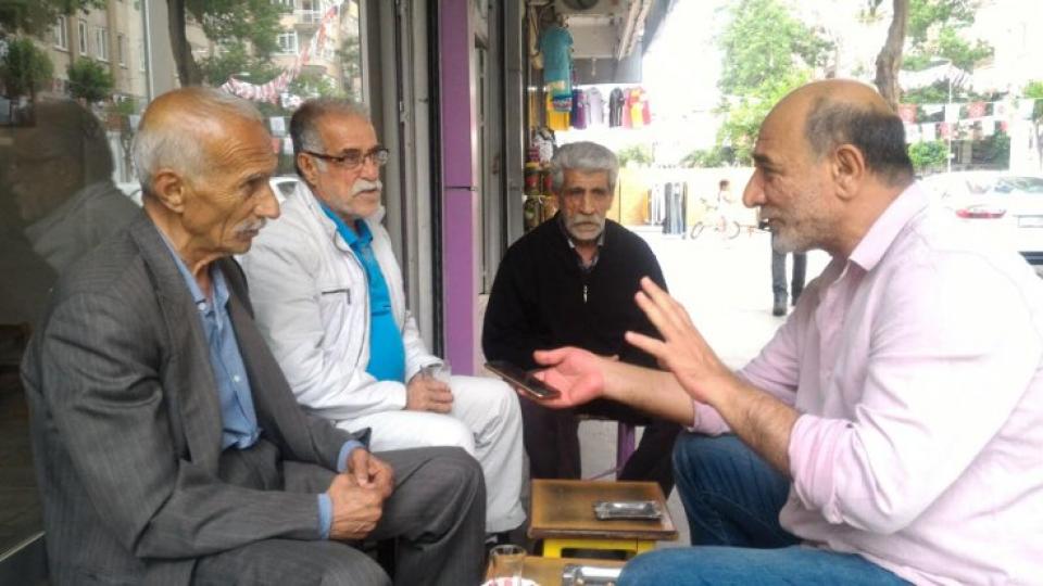 Ekrem Abê, Halim Abê, Zeki Abê ve diğerleri. Alınları günde beş vakit seccadeye değen, yaşları 70’in üzerinde Diyarbakırlılar… Geçmiş günlerine dair anıları kadar güncel olayları değerlendirme biçimleri de sahici ve keyifli. Müdavimi oldukları Zeki Abê’nin küçücük çay ocağında buluştuk, ittifakları, Cumhurbaşkanı adaylarını, siyasi partilerin oylarını konuştuk.
