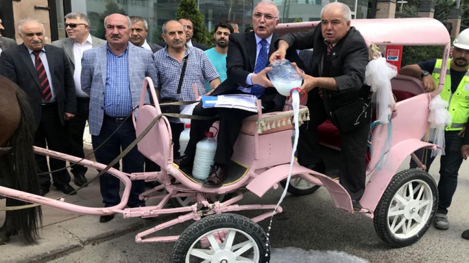 Ardahan 22,23 ve 24 Dönem Milletvekili Ensar Öğüt, başvurusunu yapmaya faytonla geldi. Parti girişinde et ve tarım ürünlerinin ithalatını eleştiren bir açıklama yapan Öğüt, çiftçilerin zor günler yaşadığını belirterek, yanında getirdiği pet kaplardaki sütü yere döktü.
